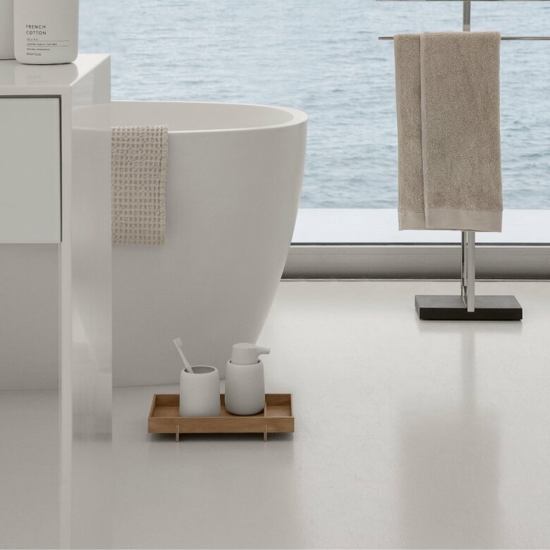 Ge din dagliga rutin en touch av lyx och funktionalitet med SONO Tvålpump från blomus. Tvålpumpen har en kapacitet på 250 ml flytande tvål. Den optimala mängden kan dispenseras med ett lätt tryck på pumphuvudet. Den matta mjuka ytan ger en behaglig känsla och ger en elegant touch till ditt badrum. Designad av Nina Thöming.